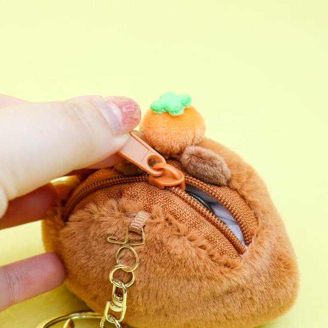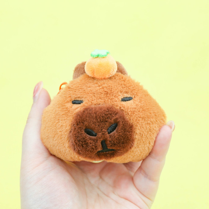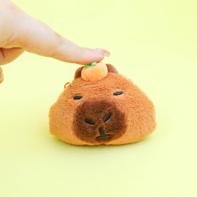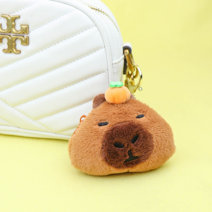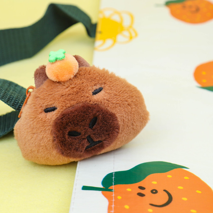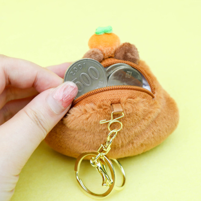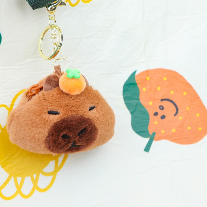 감귤을 얹은 귀엽고 엉뚱한 카피바라 동전 지갑 키링!