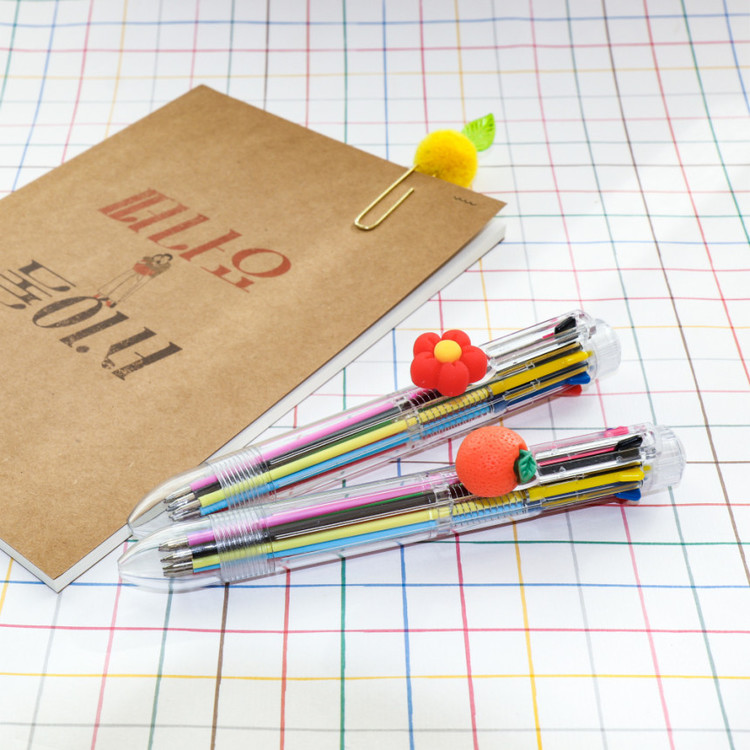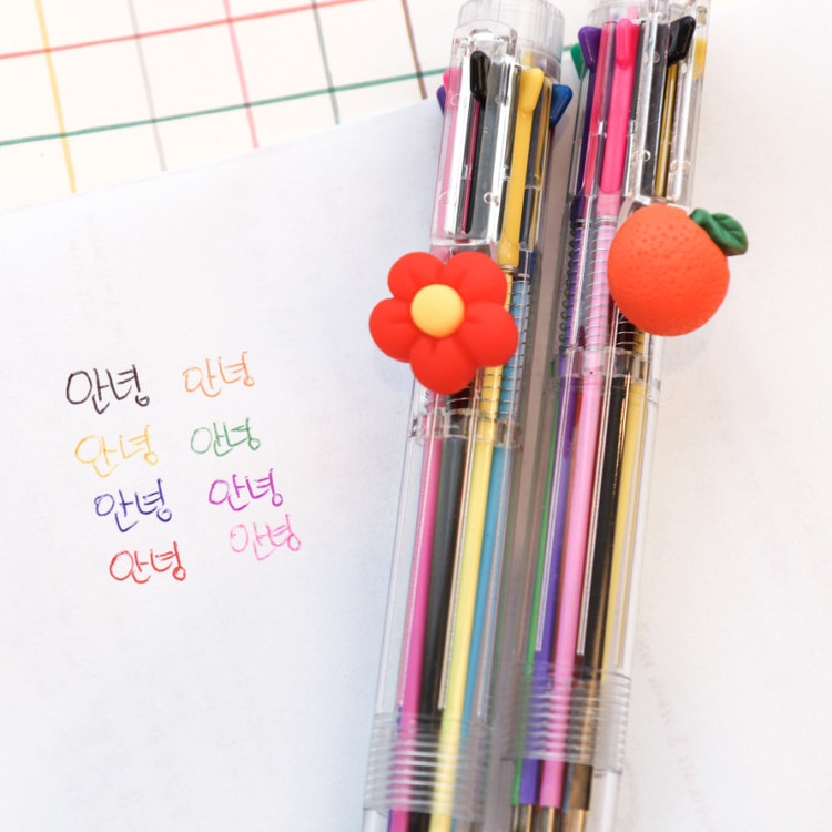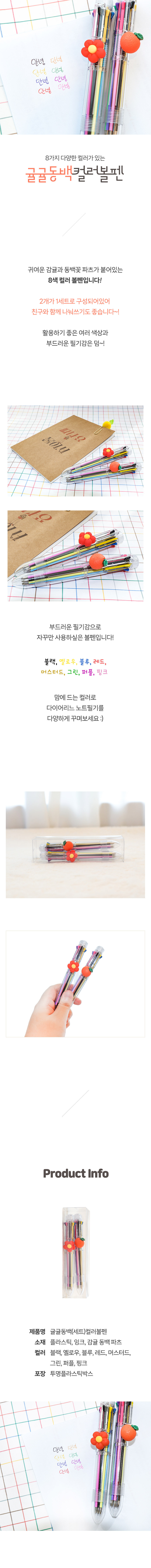 클립 8색 볼펜, 귀여운 감귤과 동백꽃 파츠가 붙어있어요!