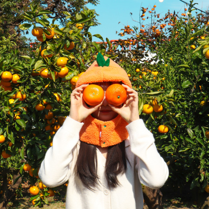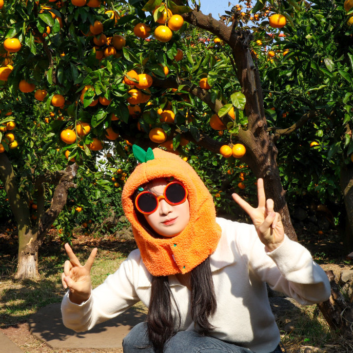 머리부터 목까지 따스하게 감싸주는 귀여운 뽀글이 귤모자 !