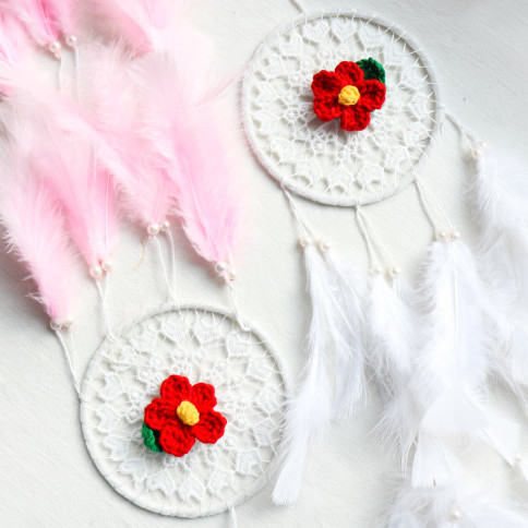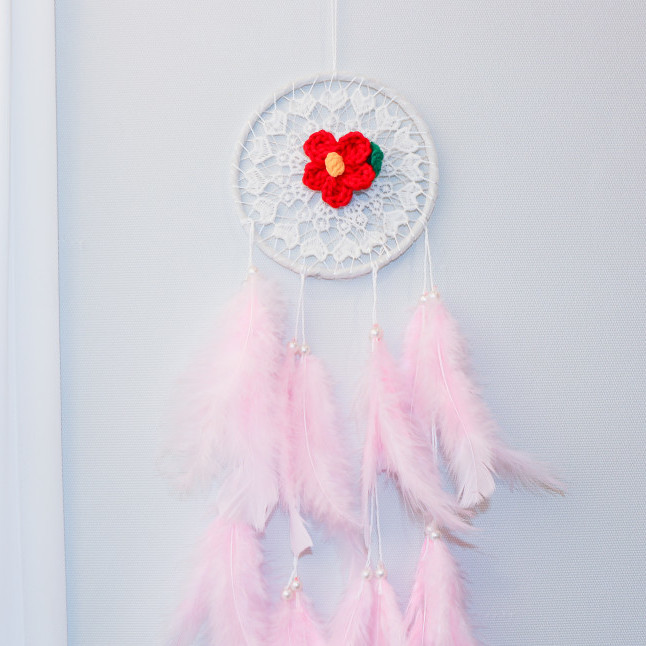 제주 감성 인테리어 소품 제주 동백꽃 깃털 드림캐처