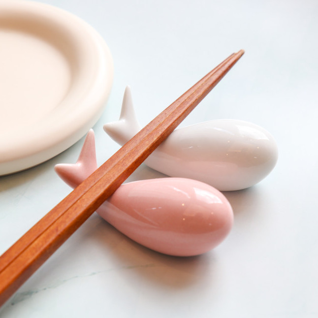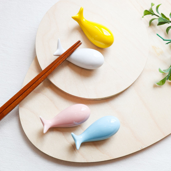 눈이 편안한 파스텔 색감의 제주 고래 꼬리 도자기 수저받침 세트