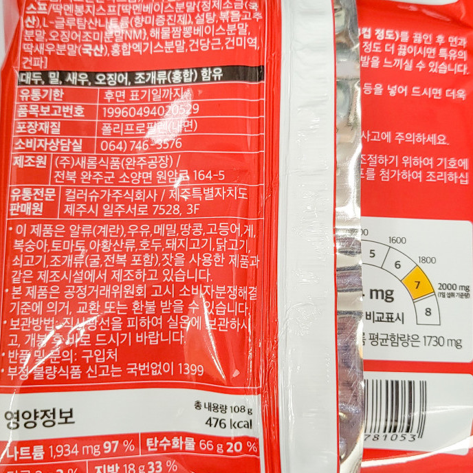 제주 딱새우 라면 봉지 1팩 4개입 108g 제주특산품 제주여행기념품
