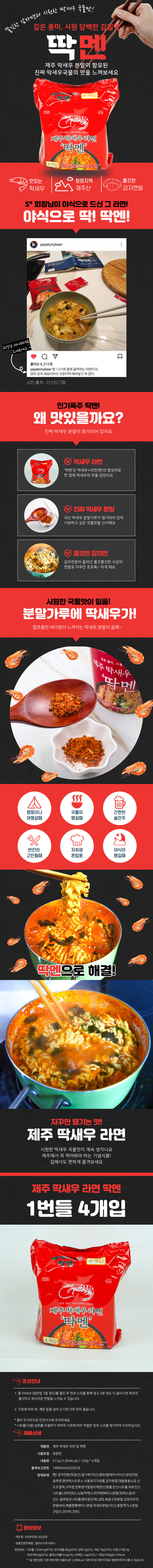 속풀이라면 딱새우면 제주선물 쫄깃쫄깃 혼밥족 딱맨 맛있는라면 새우탕면