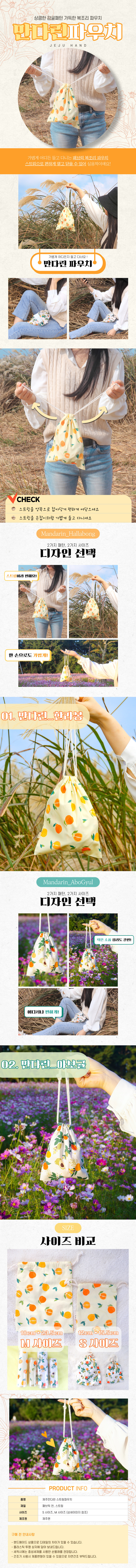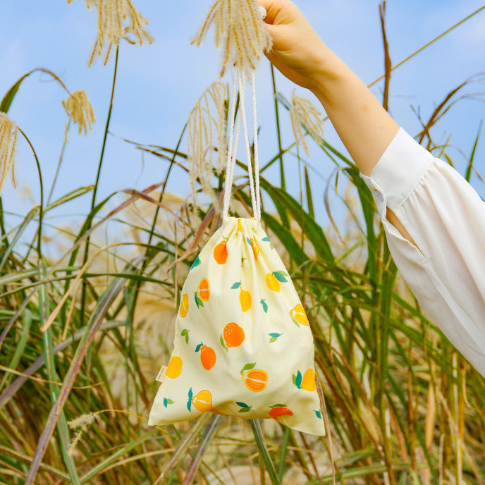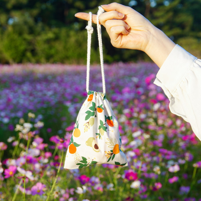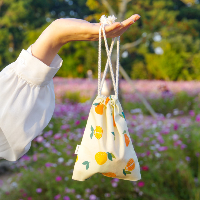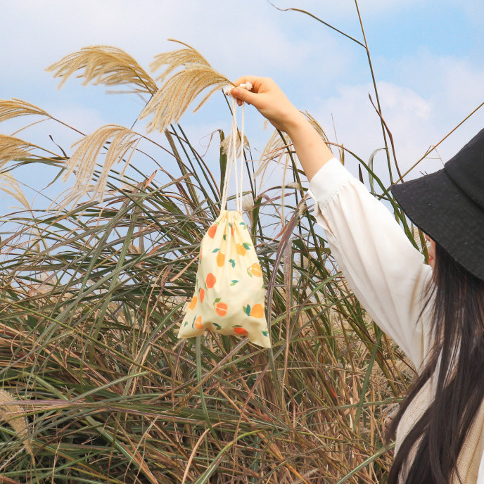 제주 감귤패턴 스트링 복조리 파우치 가벼운 미니 패브릭 복주머니