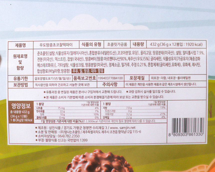 진한 고소함과 달콤함이 가~득! 느껴지는 우도땅콩초코찰떡파이