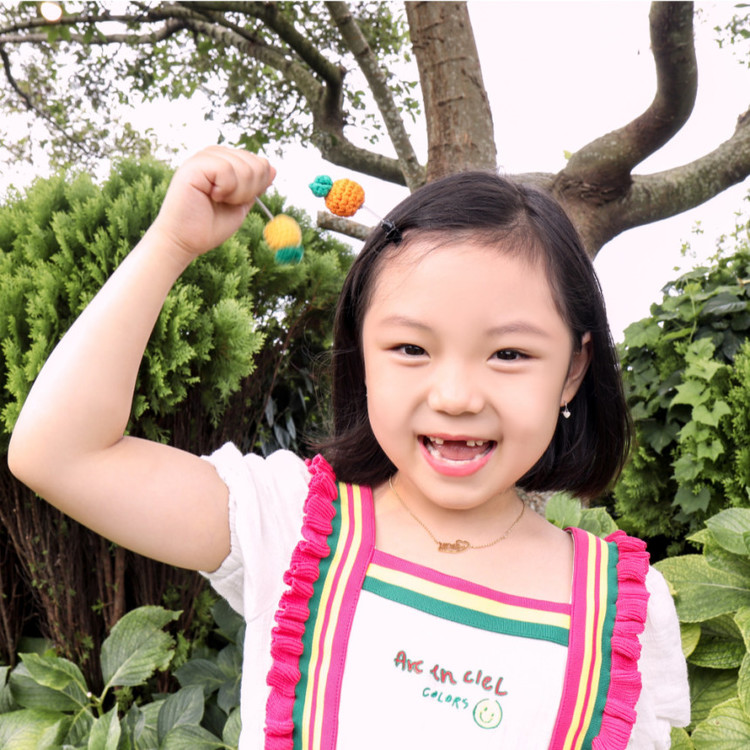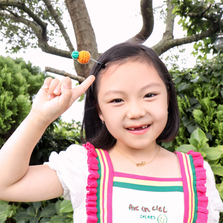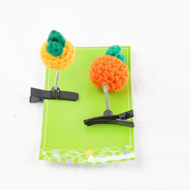 뜨개로 만든 동그란 귤이 스프링에 메달려 귀여움이 더욱 강조되는