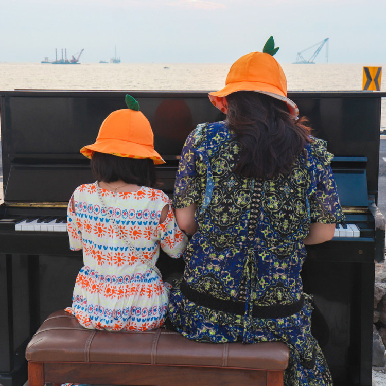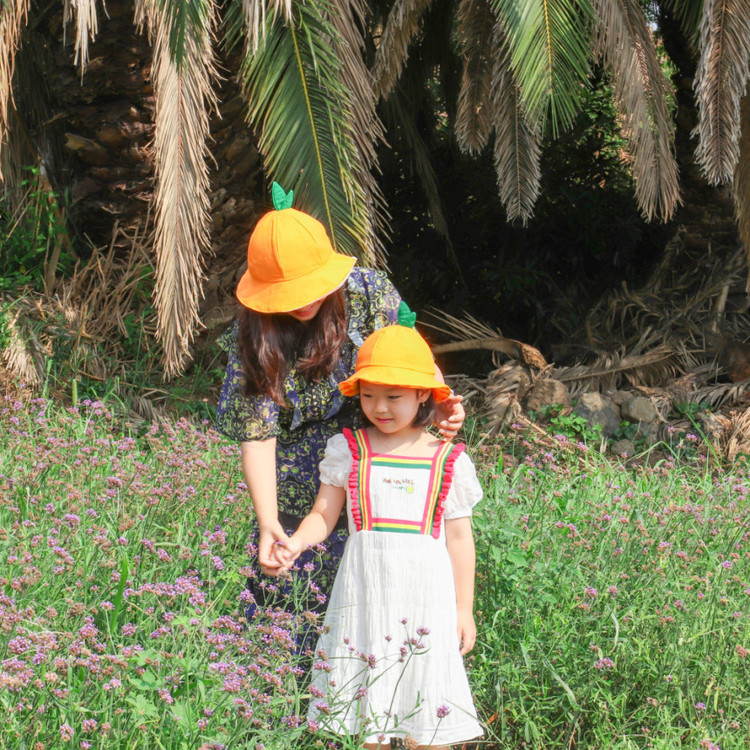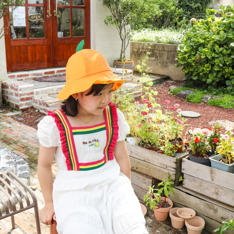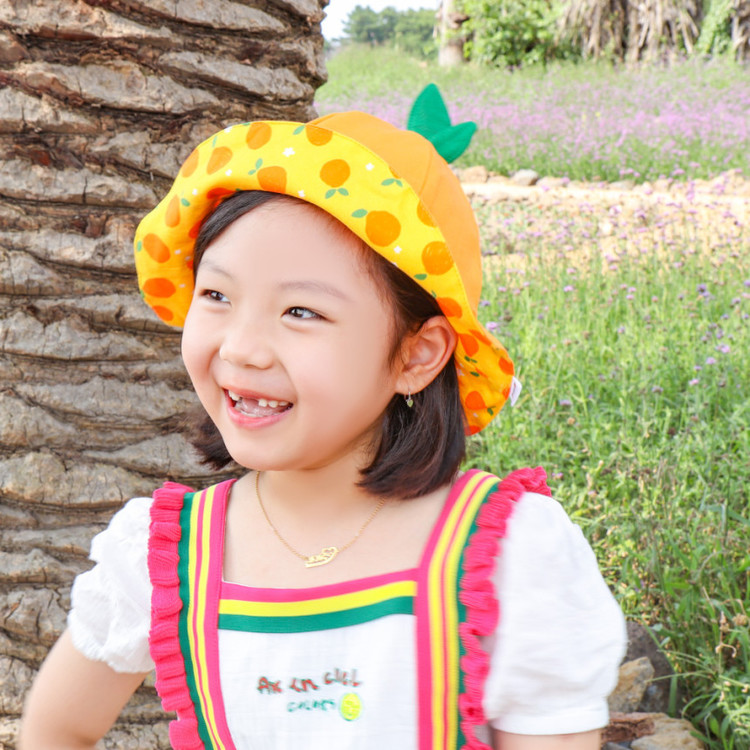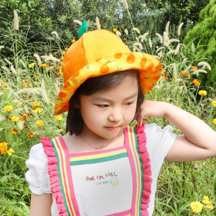 귤 패턴 양면 버킷햇으로 돌려쓸 수 있는 리버시블이 귤모자에요 🍊