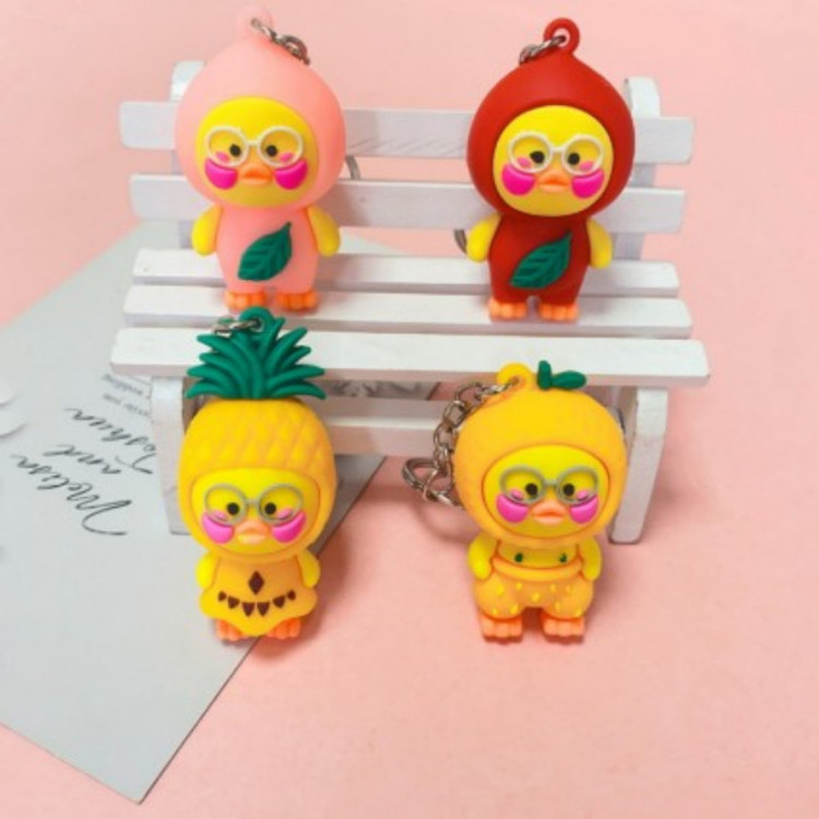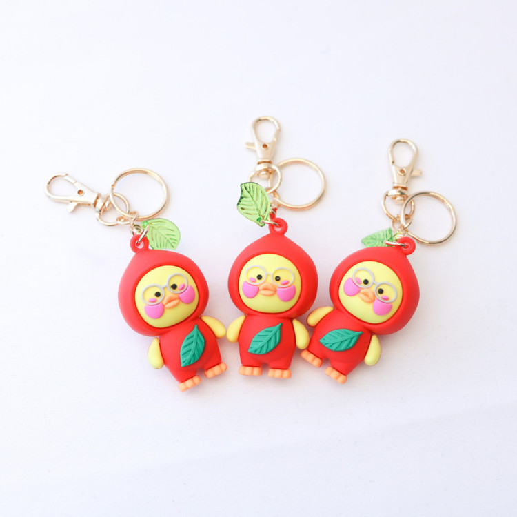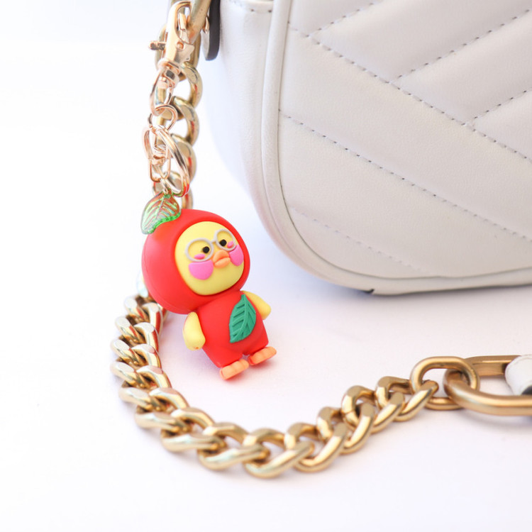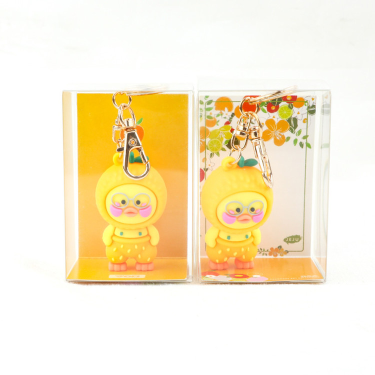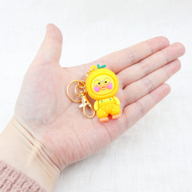 주황빛 감귤옷을 입고 있는 오리모양 키링이에요.