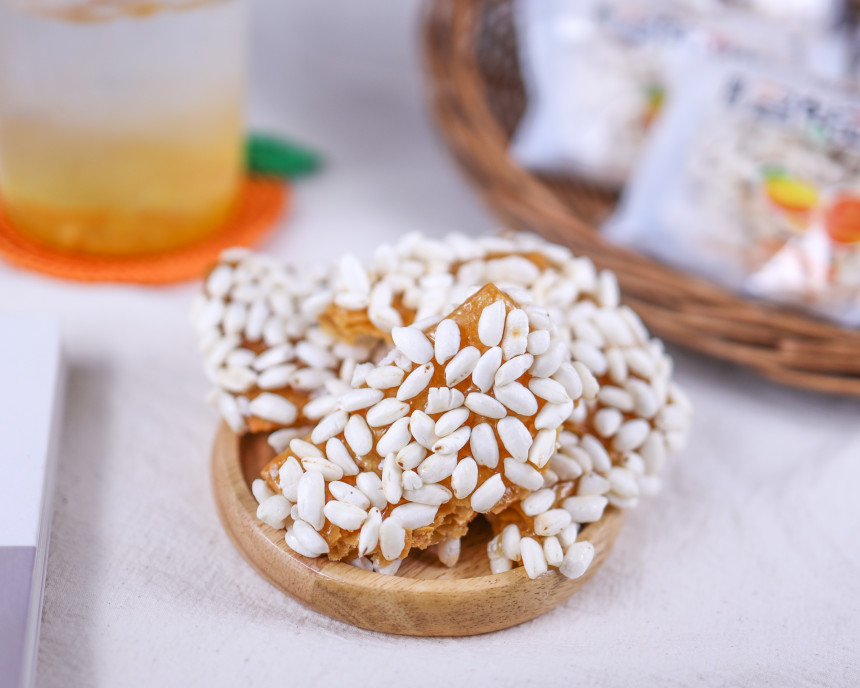 그 위에 고소한 쌀 튀밥이 묻어있어