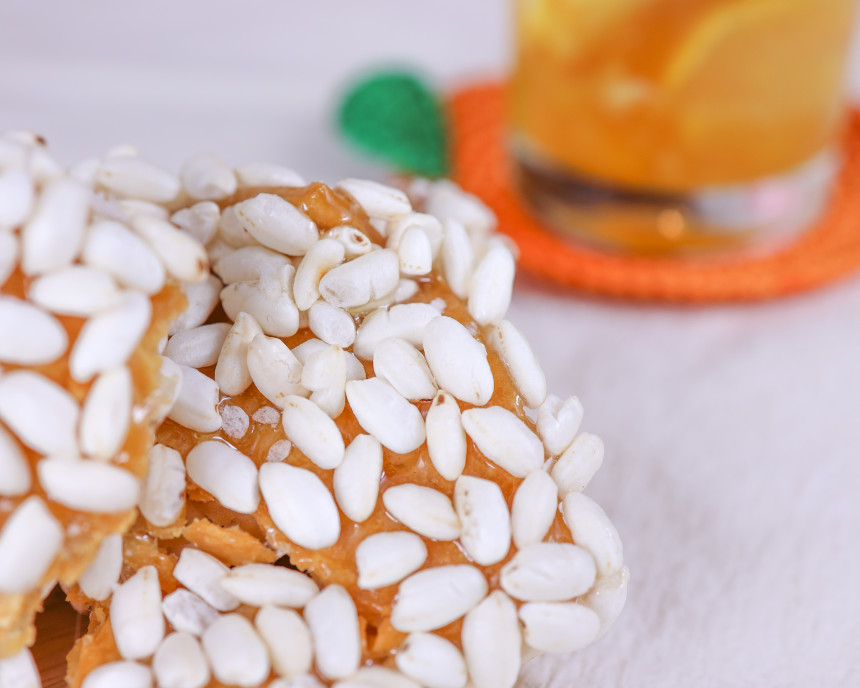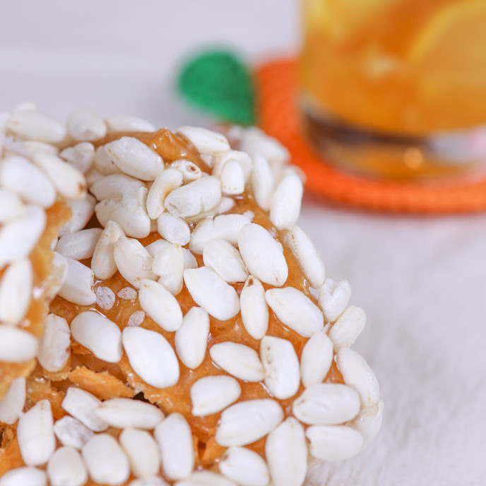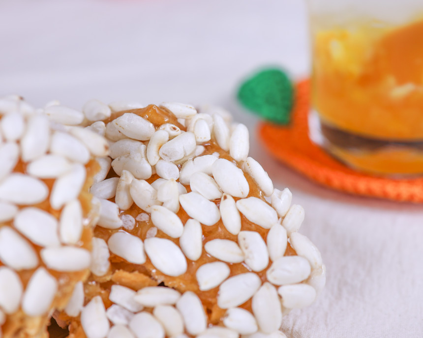 그 위에 고소한 쌀 튀밥이 묻어있어