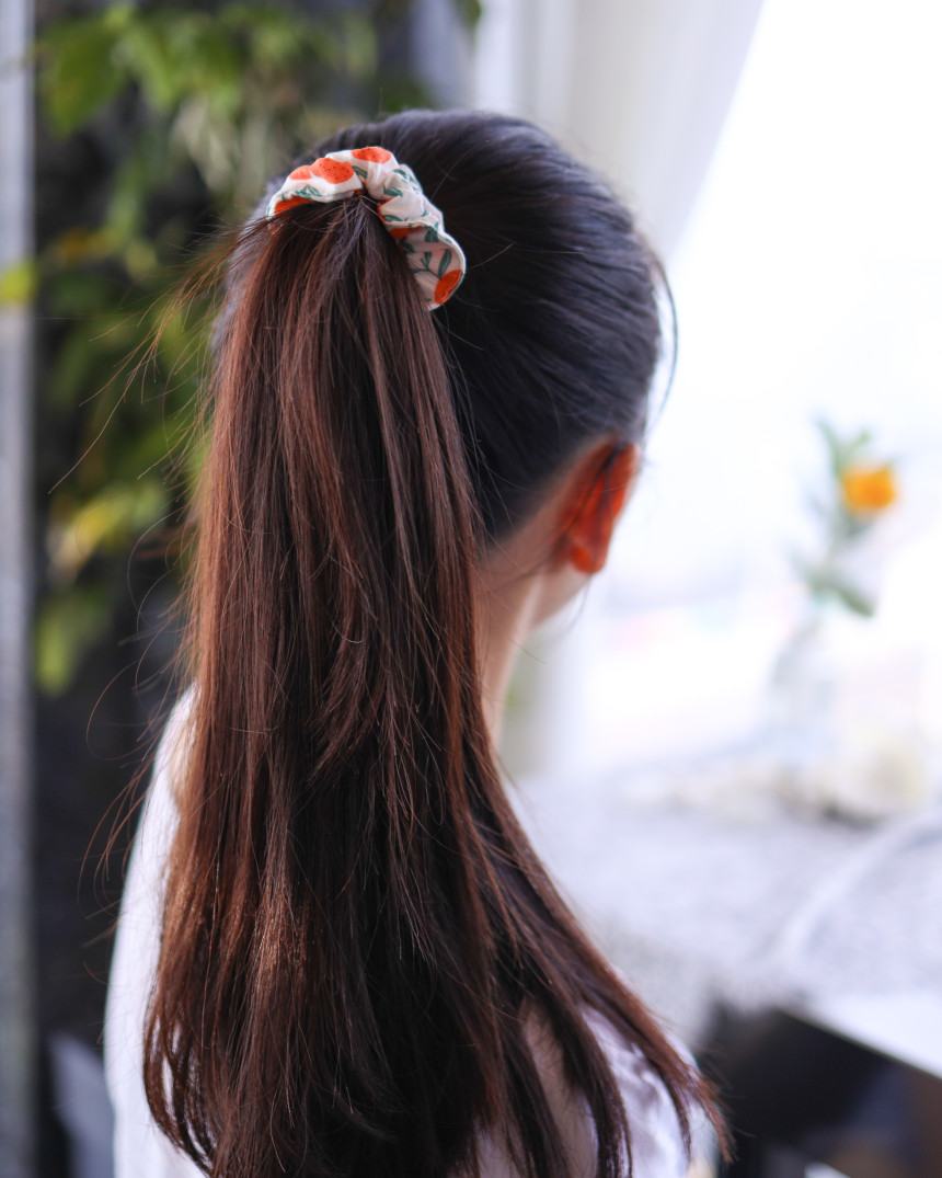 핸드메이드 귀여운 머리끈 여아 머리끈 제주 감귤 동백 헤어끈